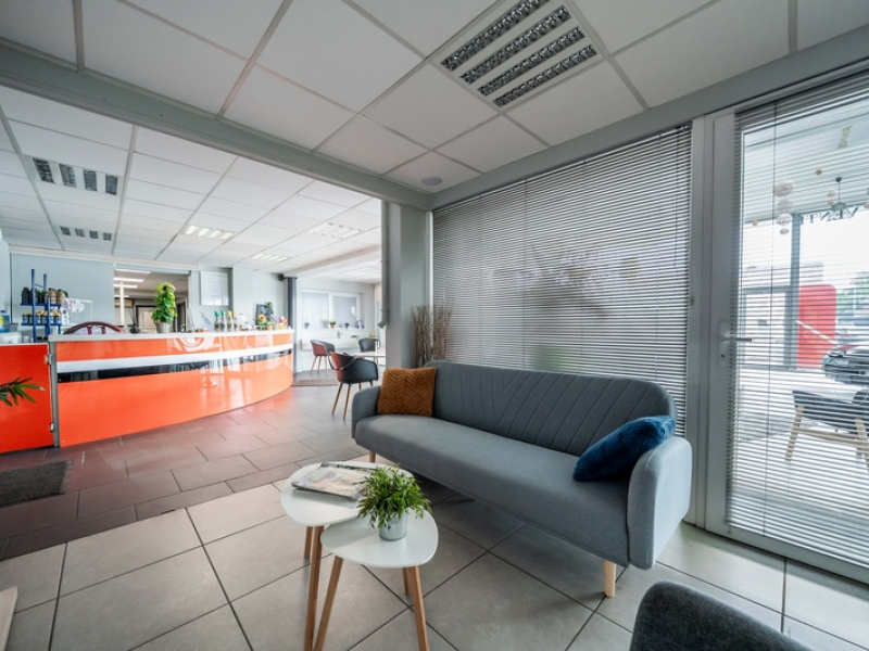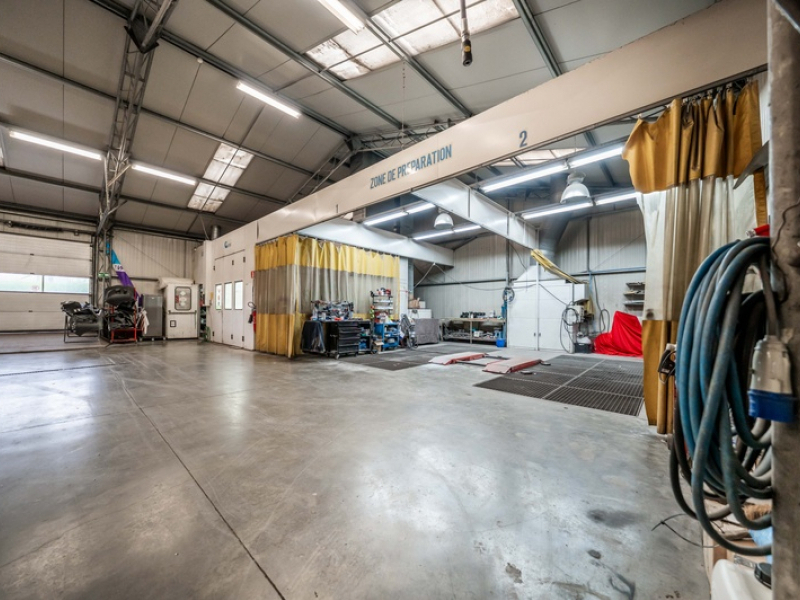Concession automobile, avec showroom de 240m², 4 bureaux, carrosserie de 330m², cabine de peinture et étage.